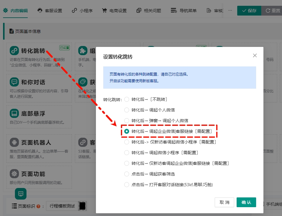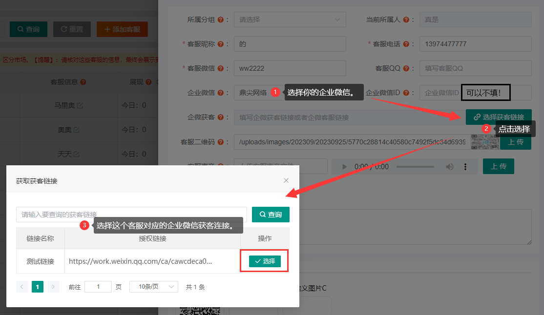这里客服的获客连接的添加又分2种情况: 2、在鼎尖系统里面添加1个客服,企业微信获客连接中对应多个成员,通过企业微信获客助手人员管理,来控制展示,你要开关客服,也只能通过企业微信里面,移出,选入成员来控制。 ⑥ 企业微信也有更丰富的自动回传方式提供选择。 最后:丰富的唤起企业微信方式。 企业微信删除方式: 差异对比: 企业微信获客助手-组件,应用的功能区别有哪些?